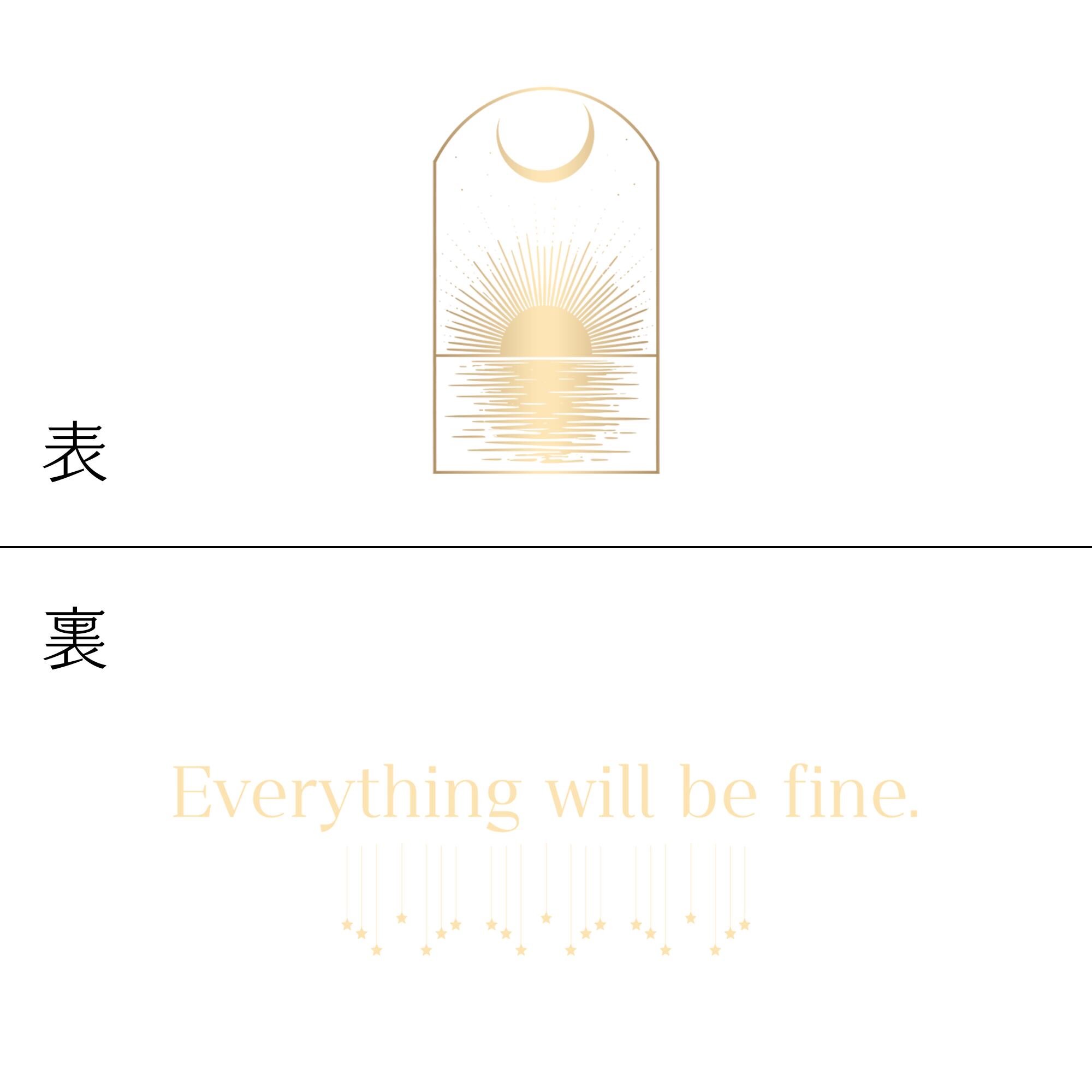 表面には月・星・太陽・海をモチーフにしたオラクルカード風のデザインを、裏面にはあなたの勇気を引き出すおまじないメッセージを。